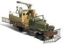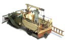 荷台は、キットのちょっとオーバースケールの木目が入ったソフトメタルではうまく仕上げることができず(これが店晒しの原因)、クレーンを除きエバーグリーンのプラ角材とバスウッドから自作しました。ソフトメタルからプラ・木に代えたことで車体重量は軽くなりましたが質感は大変よくなりました。自作した荷台はデッキタン・ウッドブラウン(タミヤアクリル)を薄く希釈したもので染めた後にSilver Wood Stain(Builders in Scale製)で木目を強調しました。 | ||